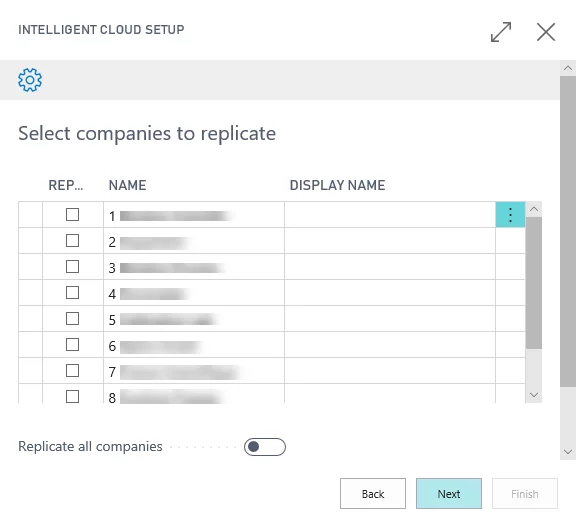 Select the companies you would like to replicate data for, and then select Next.