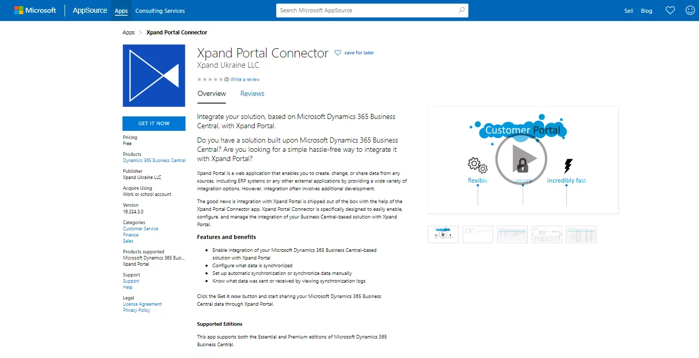 It means that if you have your solution on Microsoft Dynamics 365 Business Central SaaS version, connection with Xpand Portal can be provided via Xpand Portal Connector, downloaded from the Microsoft AppSource, and then installed to your Business Central.