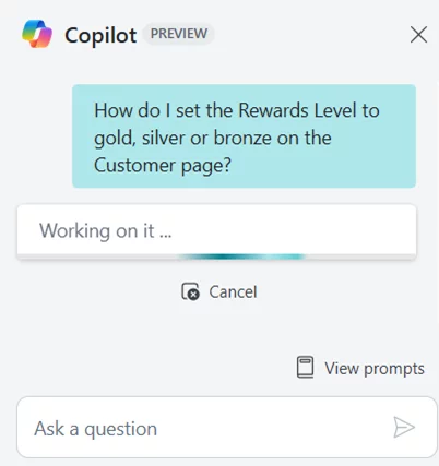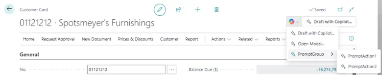 You can now use Copilot actions on Card, Document, and ListPlus pages to allow users to use your Copilots on such pages. The required AL code follows the same model as when adding Copilot prompt actions to list pages.