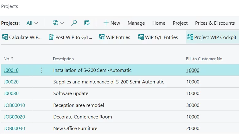 In addition to speed up the process of creating invoices for projects, Microsoft added the Create Project Sales Invoice action to the Project Card page. Now you can create invoices without having to leave the project information. Additionally, to make it faster to access and work with details about projects the following actions were added to the Project List page:
