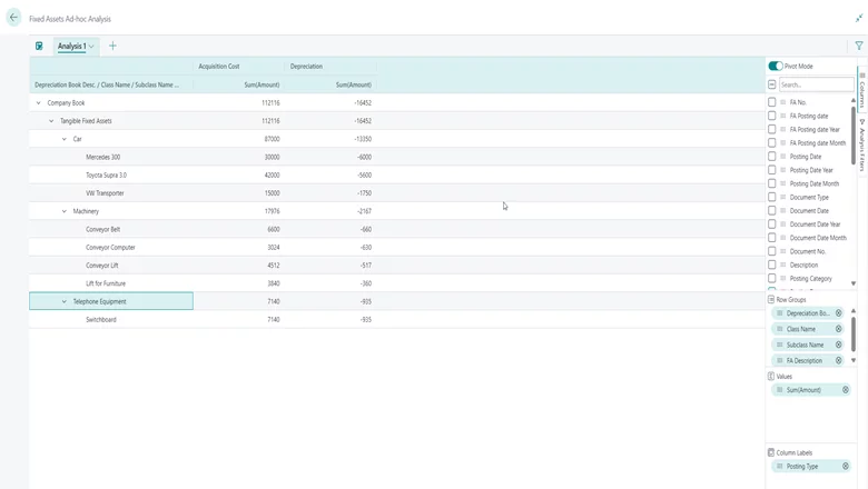 The ability to perform ad-hoc analysis on critical areas such as fixed assets, projects, and services gives users greater flexibility in understanding their data. With this feature, users can quickly generate insights and perform on-the-fly calculations, helping them to make informed decisions without needing to create custom reports.