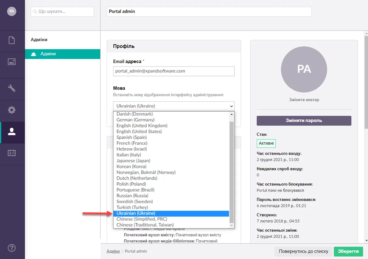 In this release of Xpand Portal, we are proud to introduce a possibility of choosing the Ukrainian language in user settings.