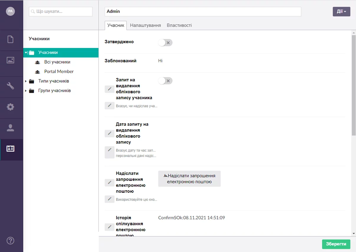 Here is an example of the member management window in Ukrainian