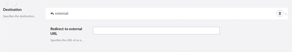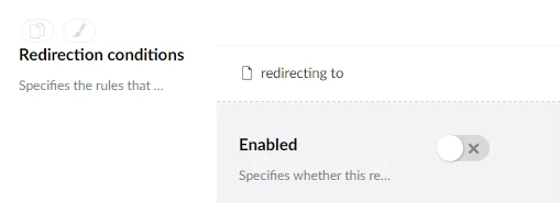 Redirect to External URL - Specifies the URL of an external page to which the user will be redirected when opening the page if this condition is met. Specifies the URL of an external page to which the user will be redirected when opening the page if this condition is met.