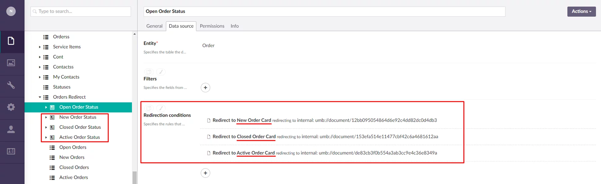 Now it is possible to redirect the member to a different page when opening the detail (card) page if a certain condition(s) is met. Redirection conditions can be configured on the Data source tab.