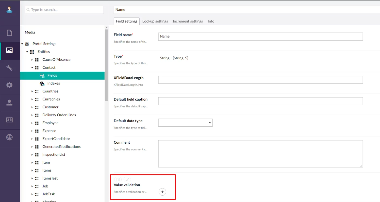 You can set up the following types of field value validation: