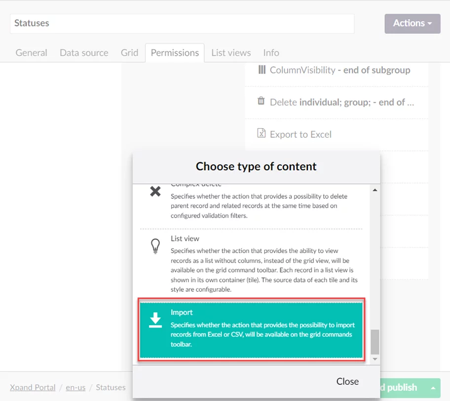 |   Note: To enable the new import functionality, the member must have permission to edit the grid and inline editing must also be added to the grid.  |