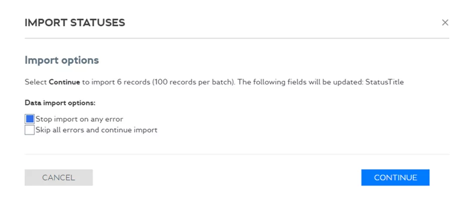 You can specify one or several fields that will be used to track unique values when importing records into the portal.
