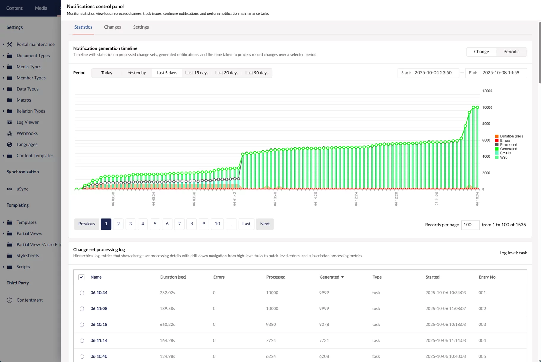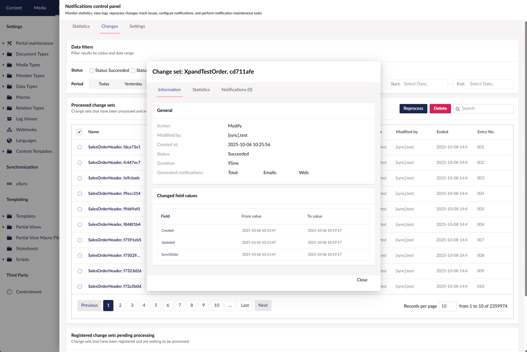 - Reprocess change sets (may be useful after troubleshooting to actually try generating notifications again)