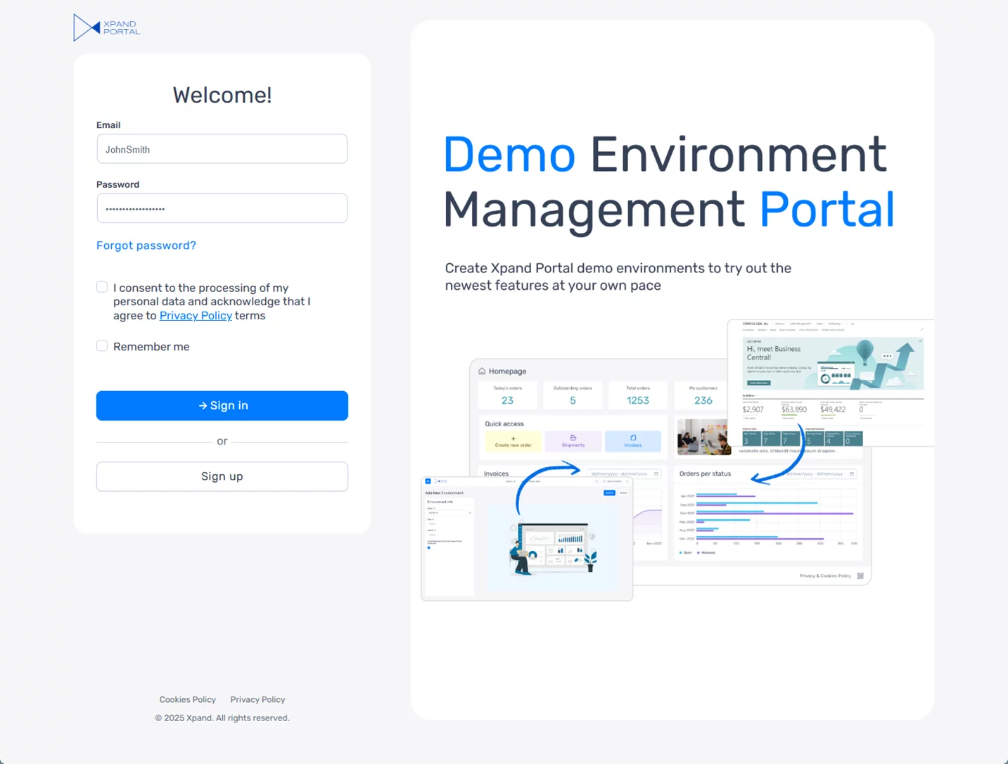 - Work with demo data powered by Xpand Portal modules, making demo environments more relevant and realistic.