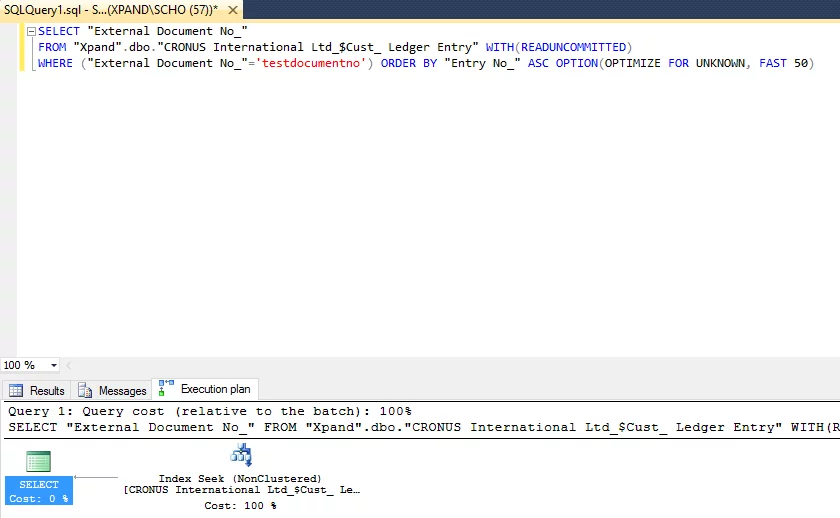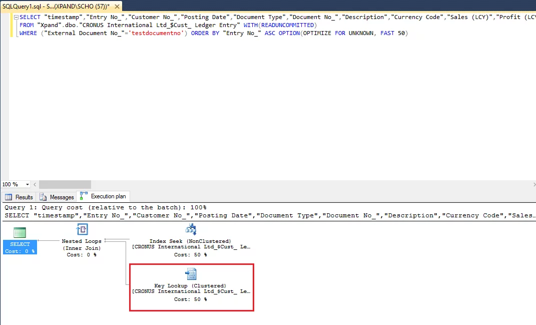 As you can see, only the External Document No. field is selected by the system. This is pretty cool, because we a) only ask SQL what we really need and b) in many cases we could eliminate the Key Lookup to the clustered index because we could take advantage of the covering index having all the fields in the non-clustered index. No excessive data, no excessive load on the network and RAM, and no extra lookup for fields, which we simply do not need and could take directly from the non-clustered index. Pure performance increase.