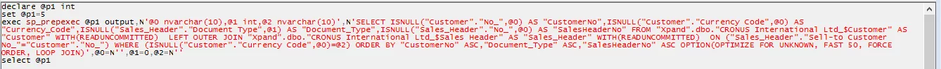 ORDER BY "Cust_Ledger_Entry$Entry No_" ASC OPTION(OPTIMIZE FOR UNKNOWN, FAST 50, FORCE ORDER, LOOP JOIN)