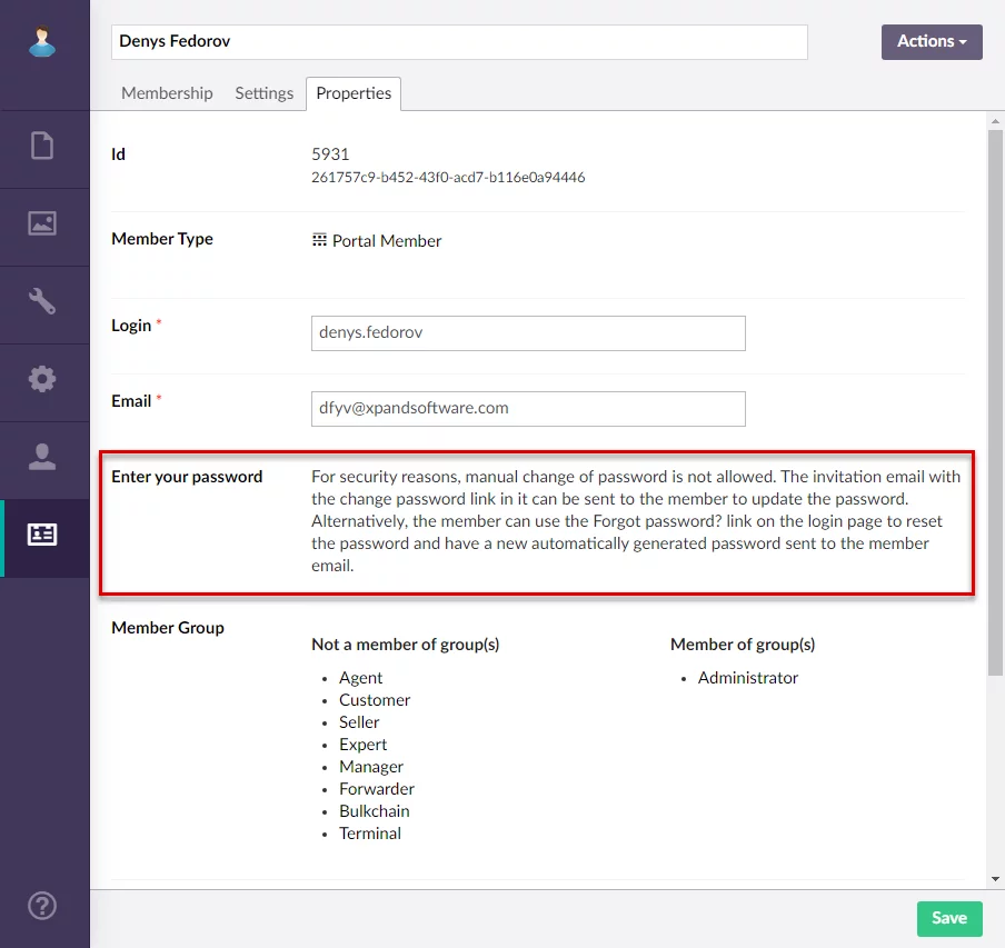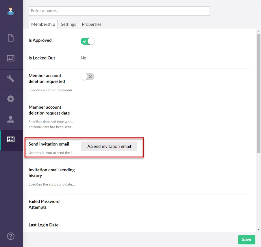 A Send invitation email button was added to the portal member settings, which can be used to send an invitational email to a new portal member with the link to change their password.