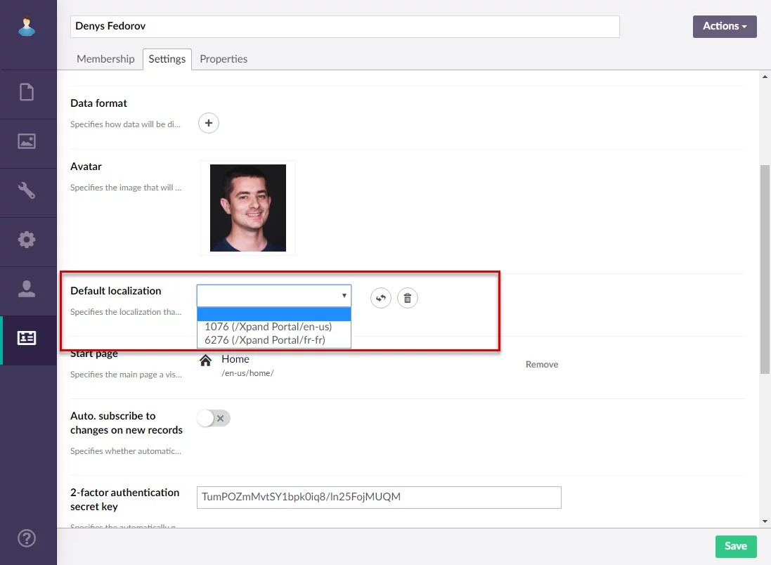 In case you use multiple localizations for your portal, now there is a possibility to choose the default localization for each portal member. Members will still be able to change the localization on the portal header after having signed in if necessary.