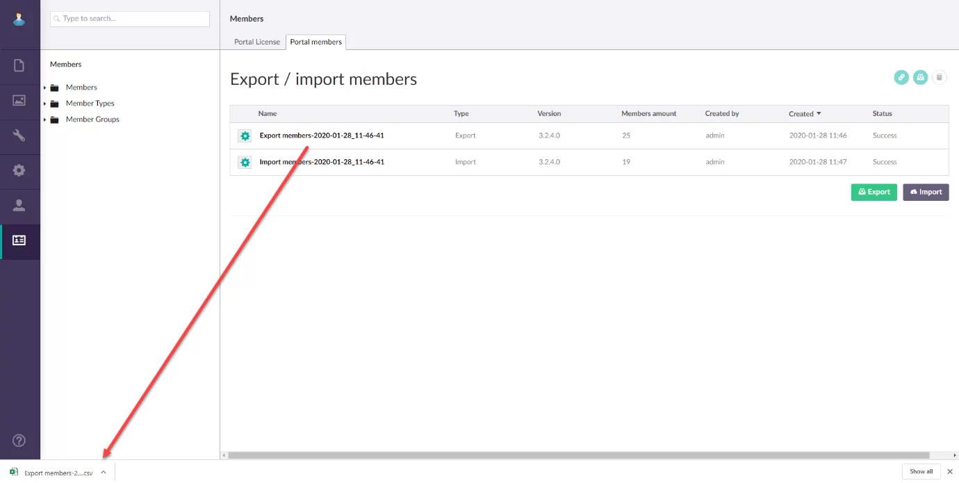 The ability to export portal members into a comma-separated values (CSV) file as well as import portal members into Xpand Portal was added. Exported members can be changed if necessary.