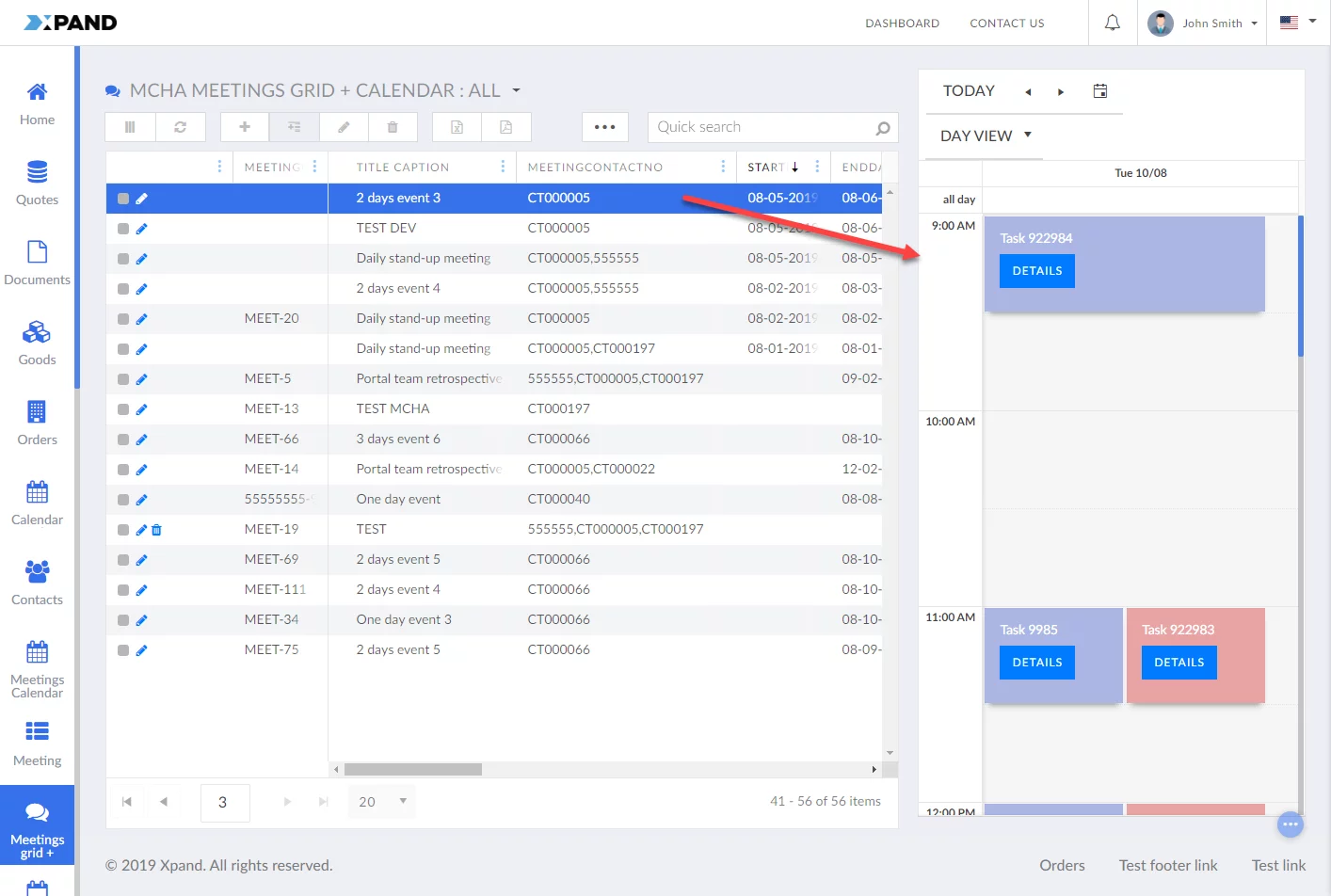 Previously, the possibility to embed a calendar into a grid page was introduced where the calendar was a continuation of the grid (calendar dates are displayed as fields of the grid). Now embedded calendar can also be in a separate layout block with the size of your choice.
