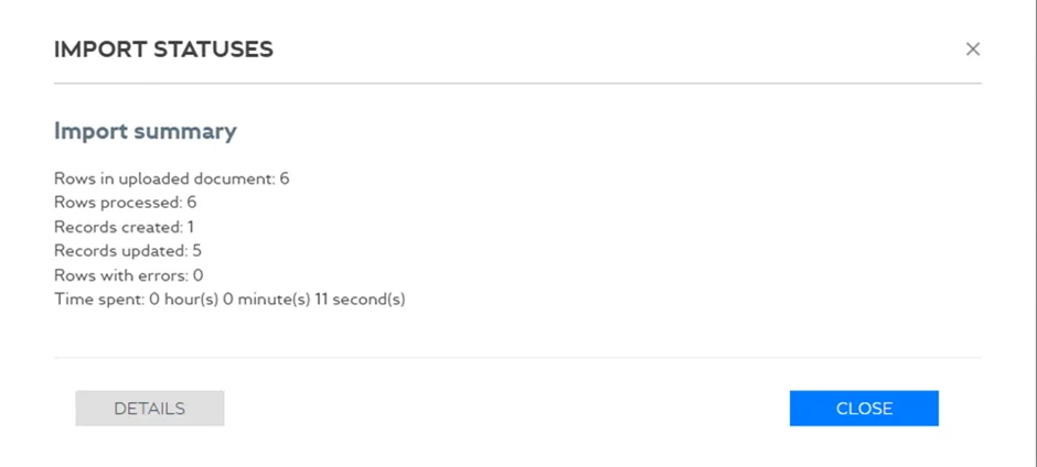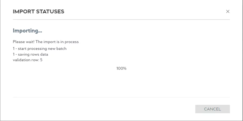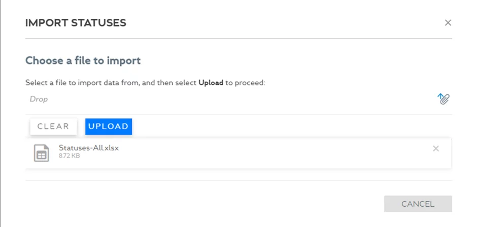 By selecting the import button (the caption is customizable and may be page-specific like in the example above), a window will be opened with a suggestion to upload an Excel document.