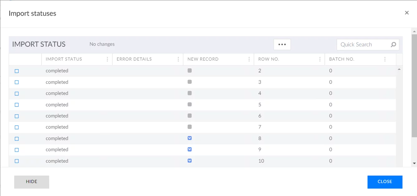 New toolbar command allows you to import data from Excel or CSV. It stores records directly on server with several validation steps.