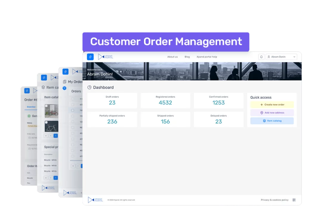 It is hard to imagine ordering groceries or clothes over the phone or email, but in the B2B world, it is still often the case. Such communication is a time-eater for both sides, as well as an opportunity for human mistakes. On one side, the Customer Order Management module is all about letting B2B customers see available for buying stock levels, see their prices and bundle price discounts, create orders, and then simply track their progress. On the other side, vendors can concentrate on the necessary operational activities to fulfill the automatically created sales orders in Business Central. Can you imagine how much simpler the order intake can be? Of course, the complexity of the “order” concept can vary depending on the industry, but this is where the flexibility of the Xpand Portal platform proves useful for custom tweaks and adjustments.