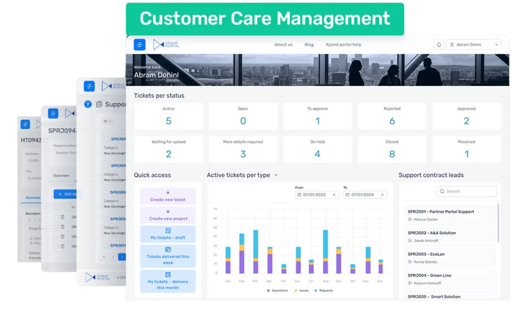 This is why we used the Xpand Portal to configure a central hub where we could collaborate with our customers, organize and structure information, manage and track project statuses, automate the support ticketing process and notifications, as well as easily measure project KPIs. After using and refining this functionality for many years now, we decided to package it into the Customer Care Management module and let other partners benefit from the enhanced customer support and reduced support management costs. Moreover, this module can be connected to Projects in Business Central as a starting point; however, it offers comprehensive additional functionality on its own. We strongly believe that many partners share the challenges when organizing communication with their customers as we did, but we know there’s already a solution for this challenge.
