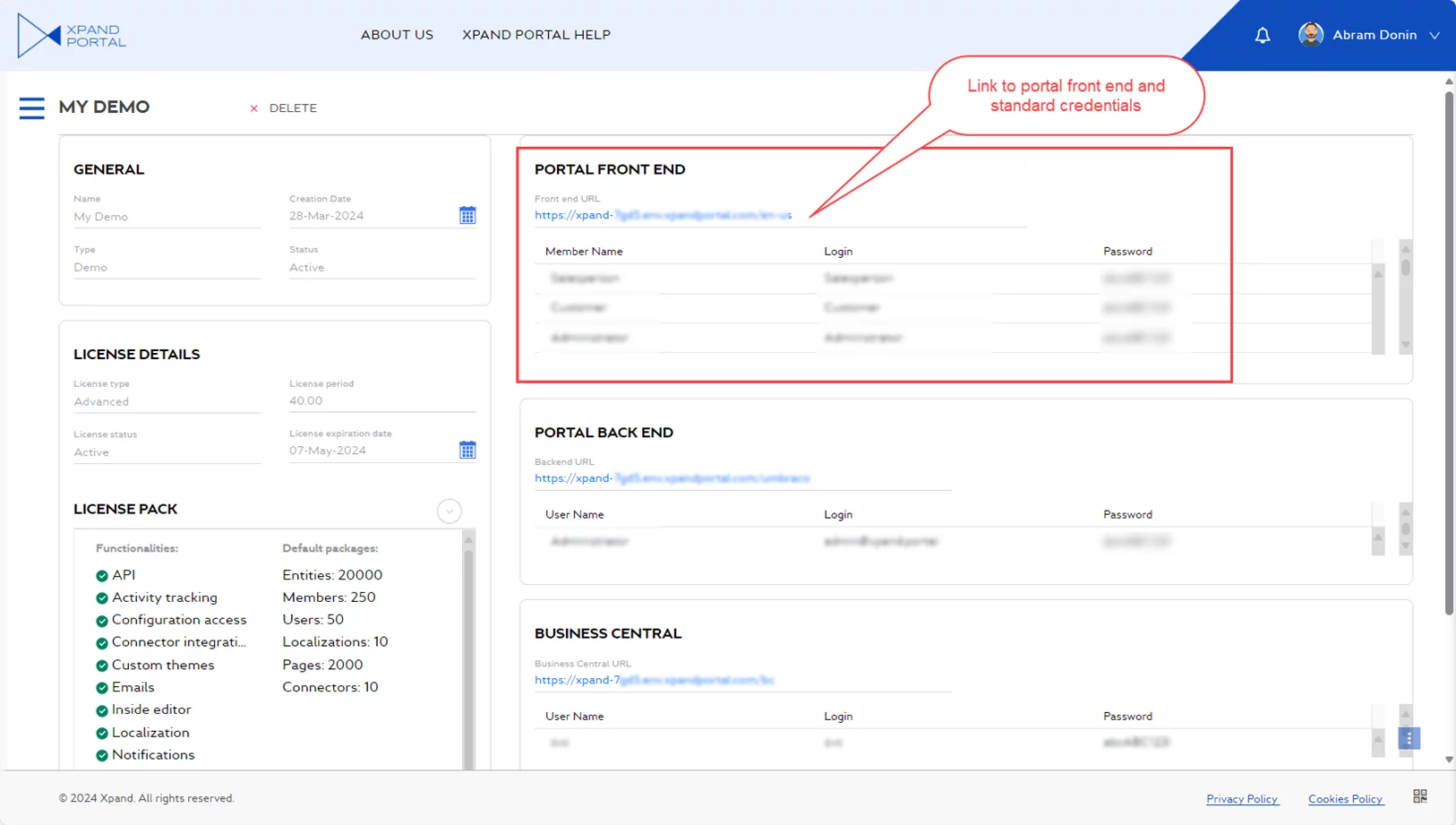 We're thrilled to unveil the Xpand Control Panel – a separate website based on the Xpand Portal product – where you can manage your demo Xpand Portal environments.